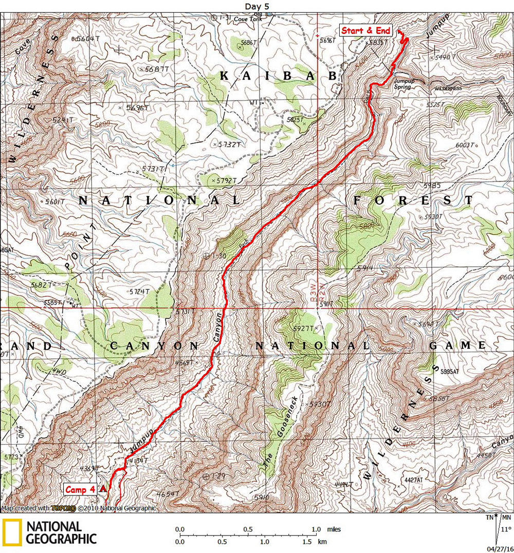 Day 5 April 7, 2016 Lower Jumpup to Jumpup Trailhead |