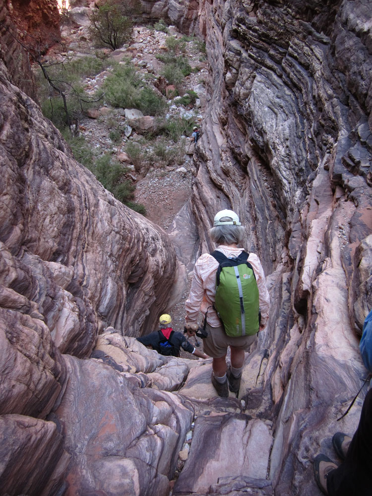 | Looking Back Down 75-Mile Canyon. | Short Downclimb in 75-Mile Canyon. | Tonto Platform from 75-Mile Canyon. |